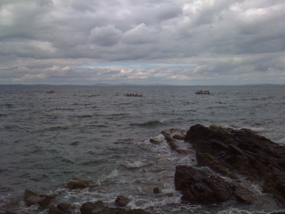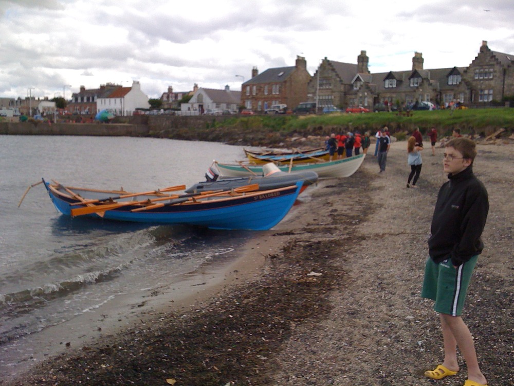 Port Seton invited us to join them for a social at their harbour. We decided rowing there and back would make the day even better. The outward voyage was successful, if a bit bumpy, with the strong wind behind the boat helping move the boat along. Arrival was soon followed by some races as the Eyemouth and North Berwick skiffs were also present – though they arrived by trailer.