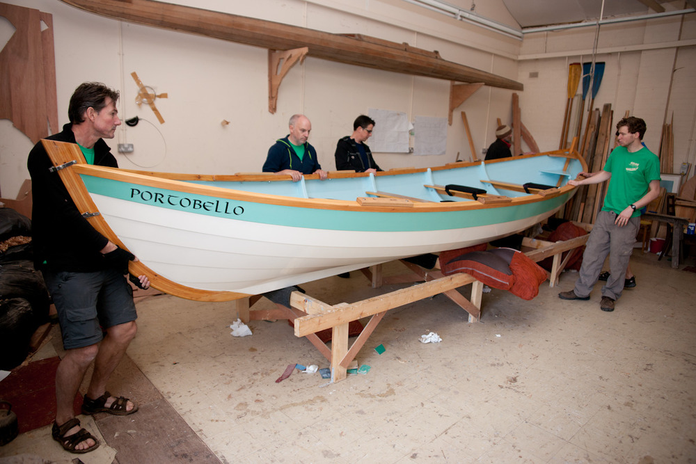 Our new boat about to leave the workshop where pieces of timber and sheets of plywood were transformed into a creature of beauty. Image (c) Max Blinkhorn
