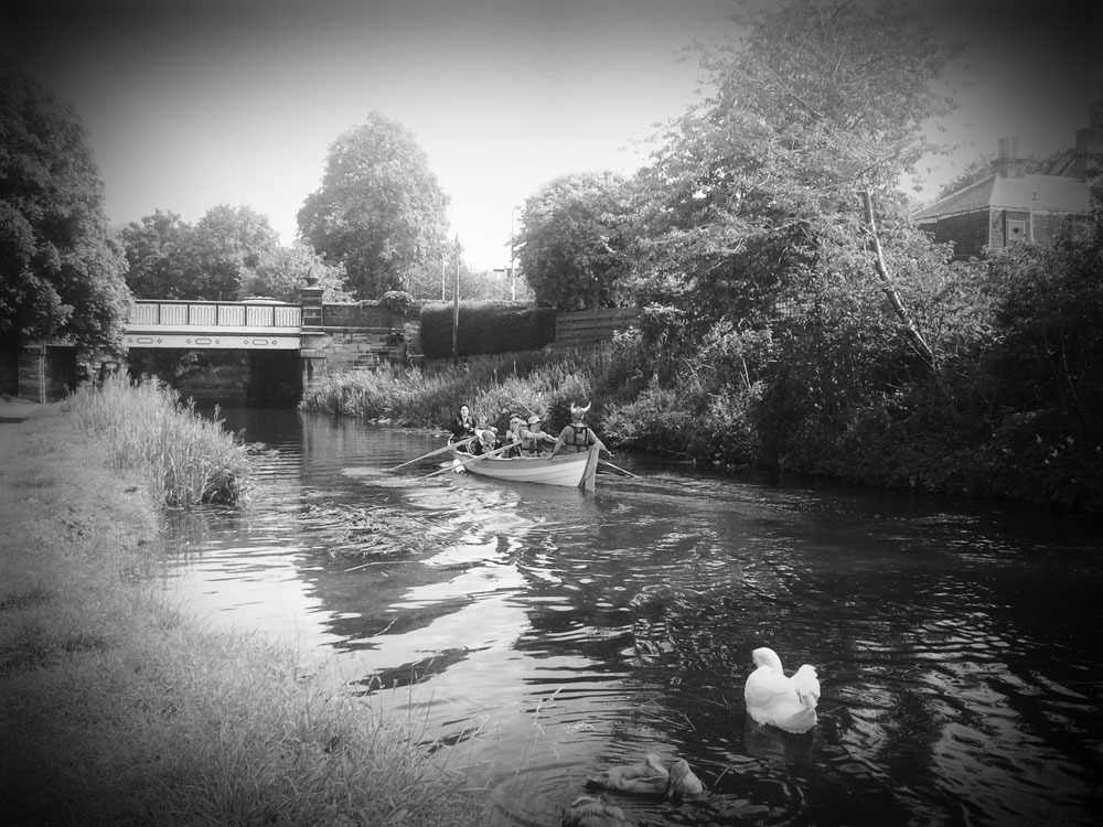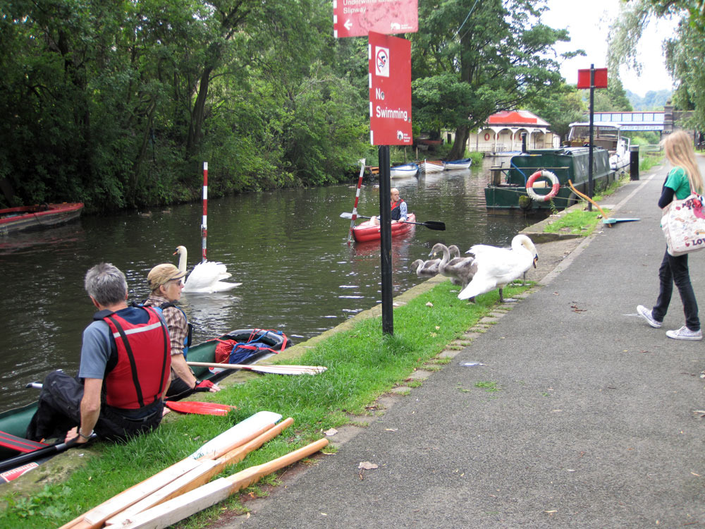The canal posed challenges of a different sort. First up were the swans who took up residence at the slipway by Harrison Park – thanks to Mo for gallantly sacrificing her sandwiches to entice them back onto the water! Next, in the tight confines of the canal, we managed to break an oar whilst manoeuvring out onto the water.
