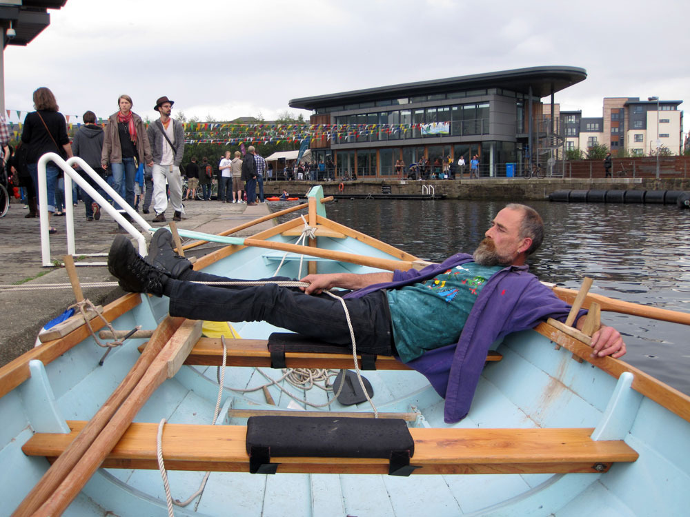This was a very different day out for RowPorty, but it was good to explore a stretch of water, very different to our own, as well as making links with other communities. The laid back nature of the festivities is reflected by the picture of Nik Savage, relaxing on Jenny Skylark.