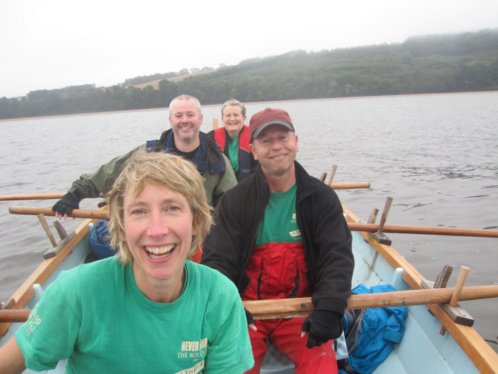 By this time the rain had stopped, & although the day remained overcast it stayed dry for the rest of the row. We slowly dried out, & enjoyed lots of banter; although it was hazy, we could see the Tay rail bridge from quite early on, but tantalisingly, it seemed to take us forever to get there. Although the wind was against us, we’ve rowed in much tougher conditions at some of the regattas. But it was a long row, so we were glad to arrive at Wormit, between the 2 Tay bridges, after a 21/2 hour row from Newburgh. Andrew, of the rescue boat, had phoned to check on our progress, & was there to meet & help us out of the water.
