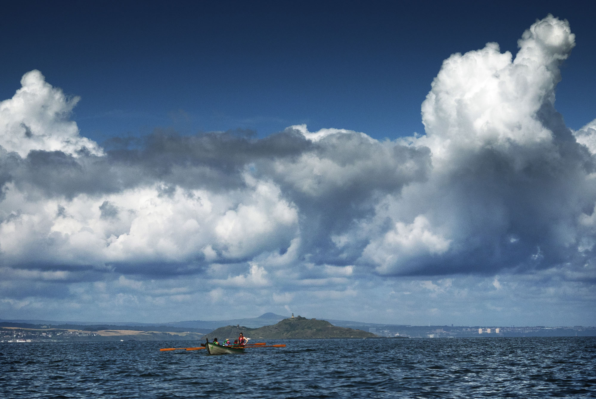 Jenny Skylark, Icebreaker, Old Salt and Pascual made best of finding themselves at the fulcrum of a spin cycle of thundery weather – that had ladled a yellow weather warning over much of the country. We sat centred in sunshine and circumnavigated Inchkeith island.
