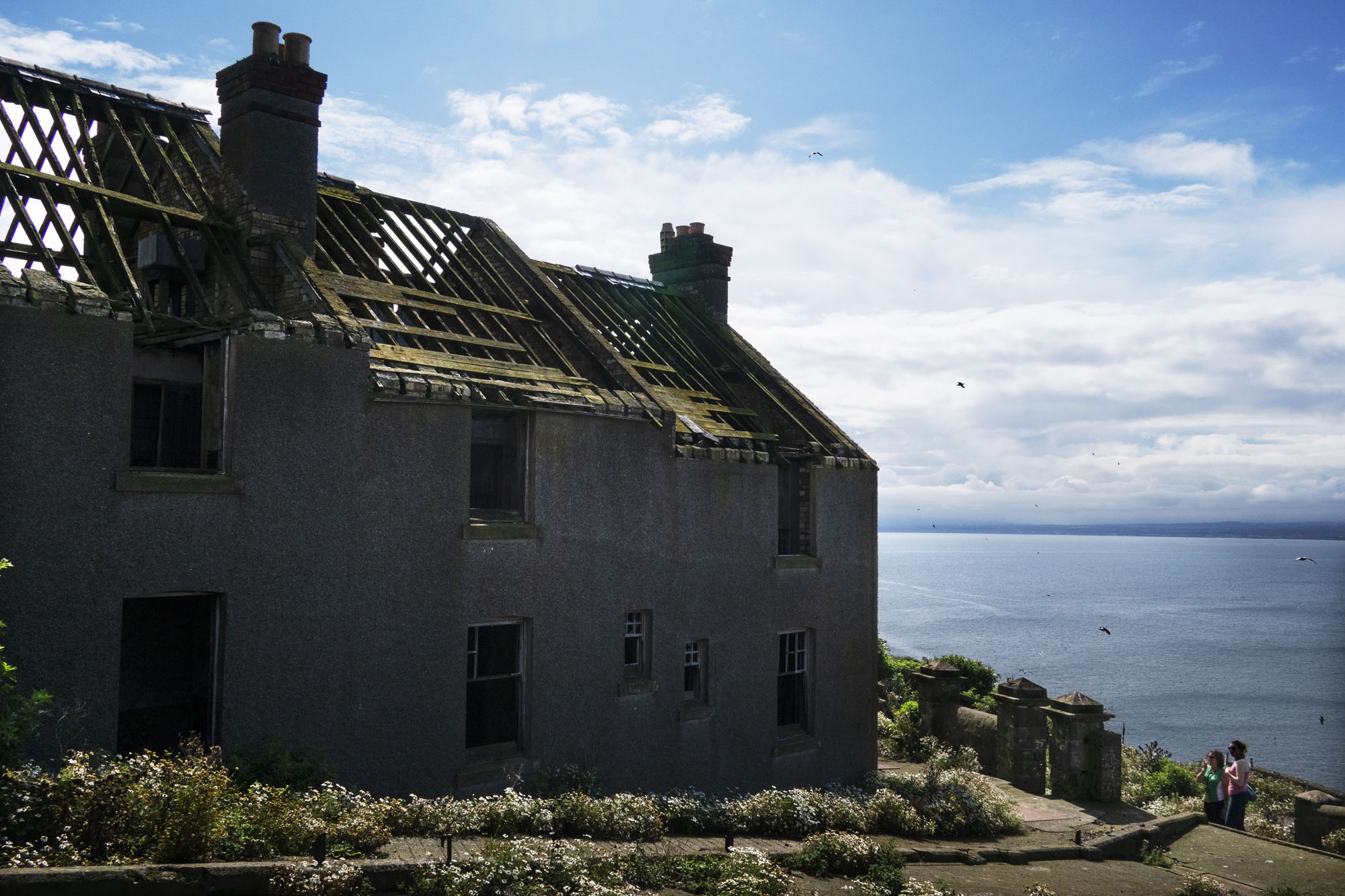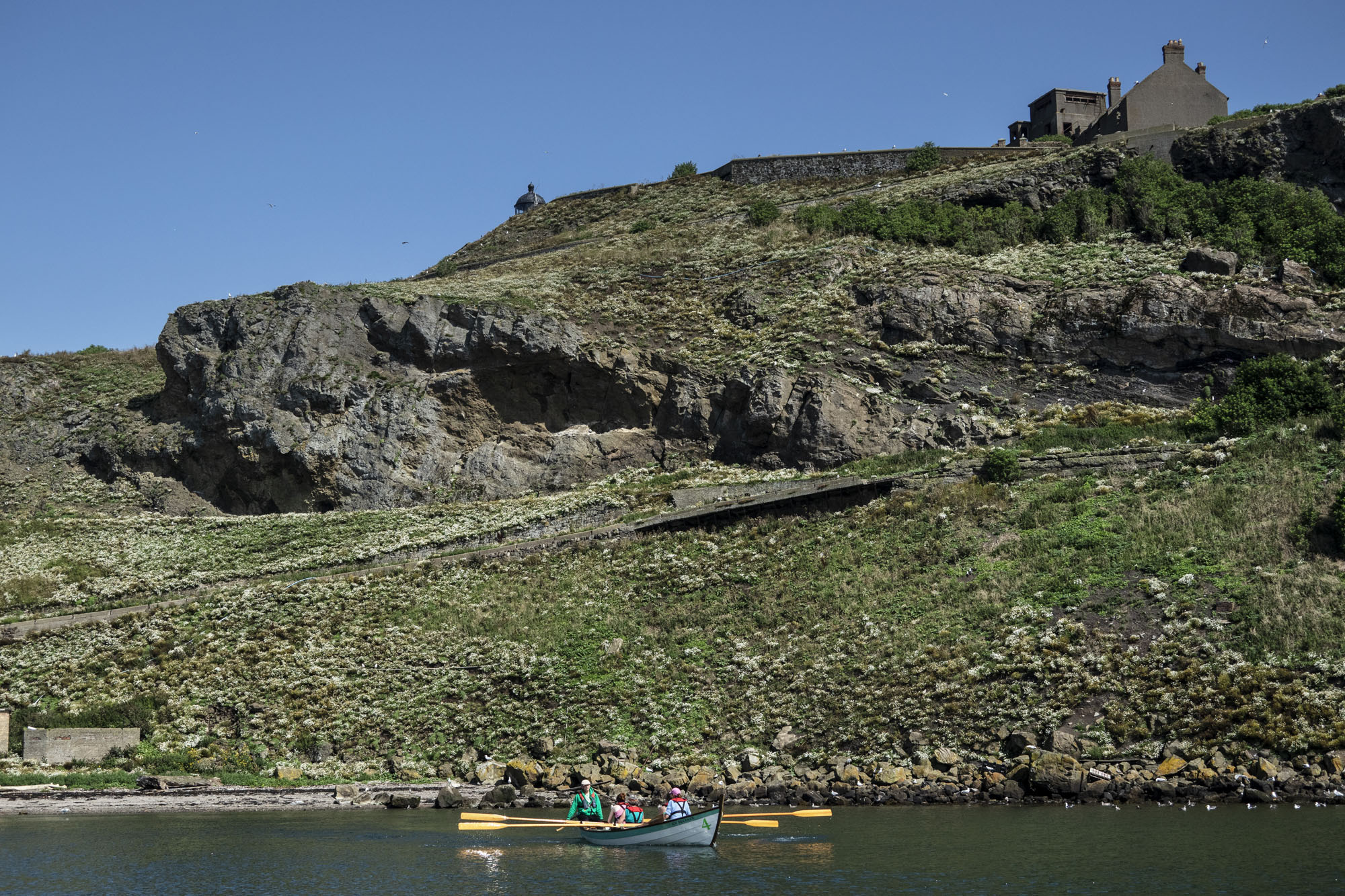 Anna Mackenzie was visiting from the Hebrides and we were eager to show that there were islands lurking a short shift just shy of the capital. She had shown us heather hills and silver beaches up north – we showed her centuries of decay and dereliction. This time the gulls didn’t mind us so much. With a sharp Knife Amanda freed a juvenile from an albatross of plastic that had garlanded itself around its neck. Soon darker clouds loomed distant and just like the previously plentiful puffins, razor bills and guillemots, we were gone.